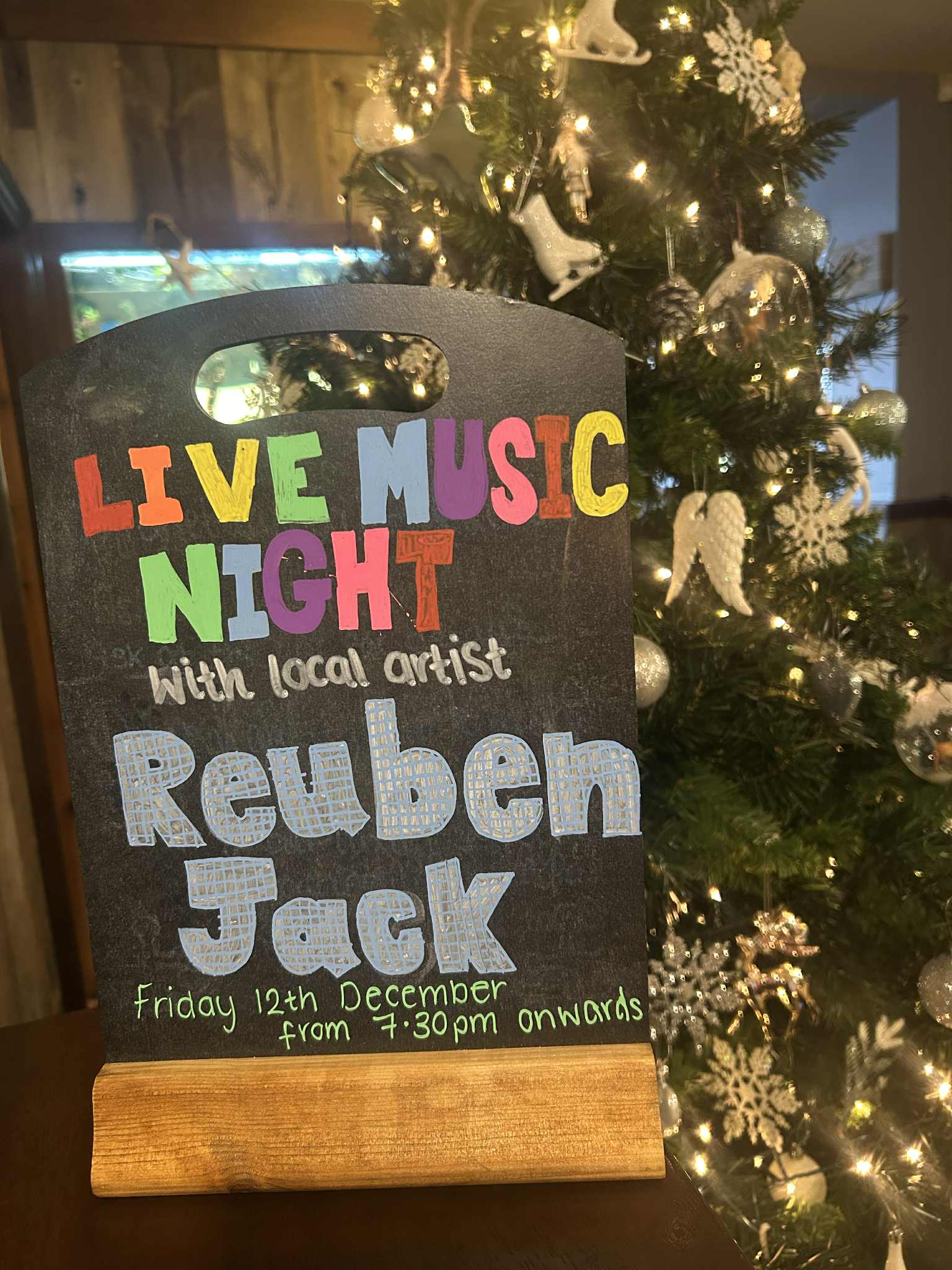 Join us as local artist Reuben Jack sets the mood with two acoustic sets from 7:30pm. Whether you're joining us for a festive dinner sitting, or simply popping in for a drink, you’ll be treated to live background music in a warm, relaxed atmosphere.